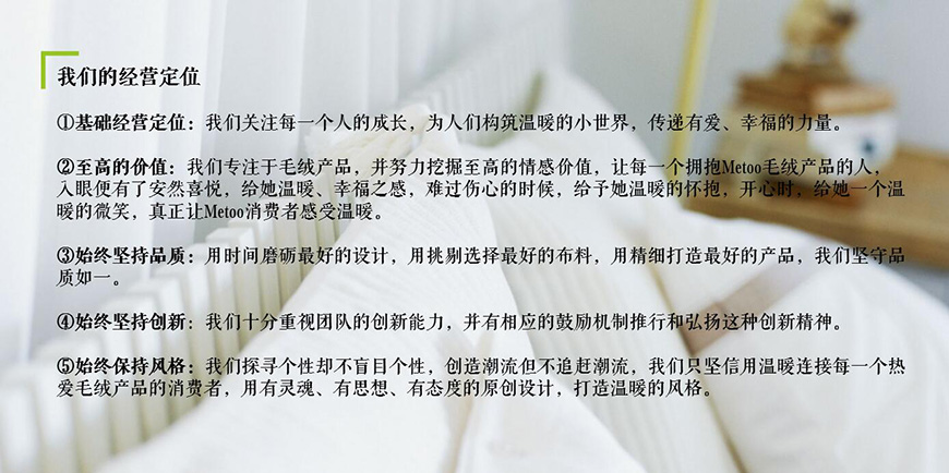 3)Metoo的核心價值觀:向愛而生、創(chuàng)新設計、團結(jié)進取。