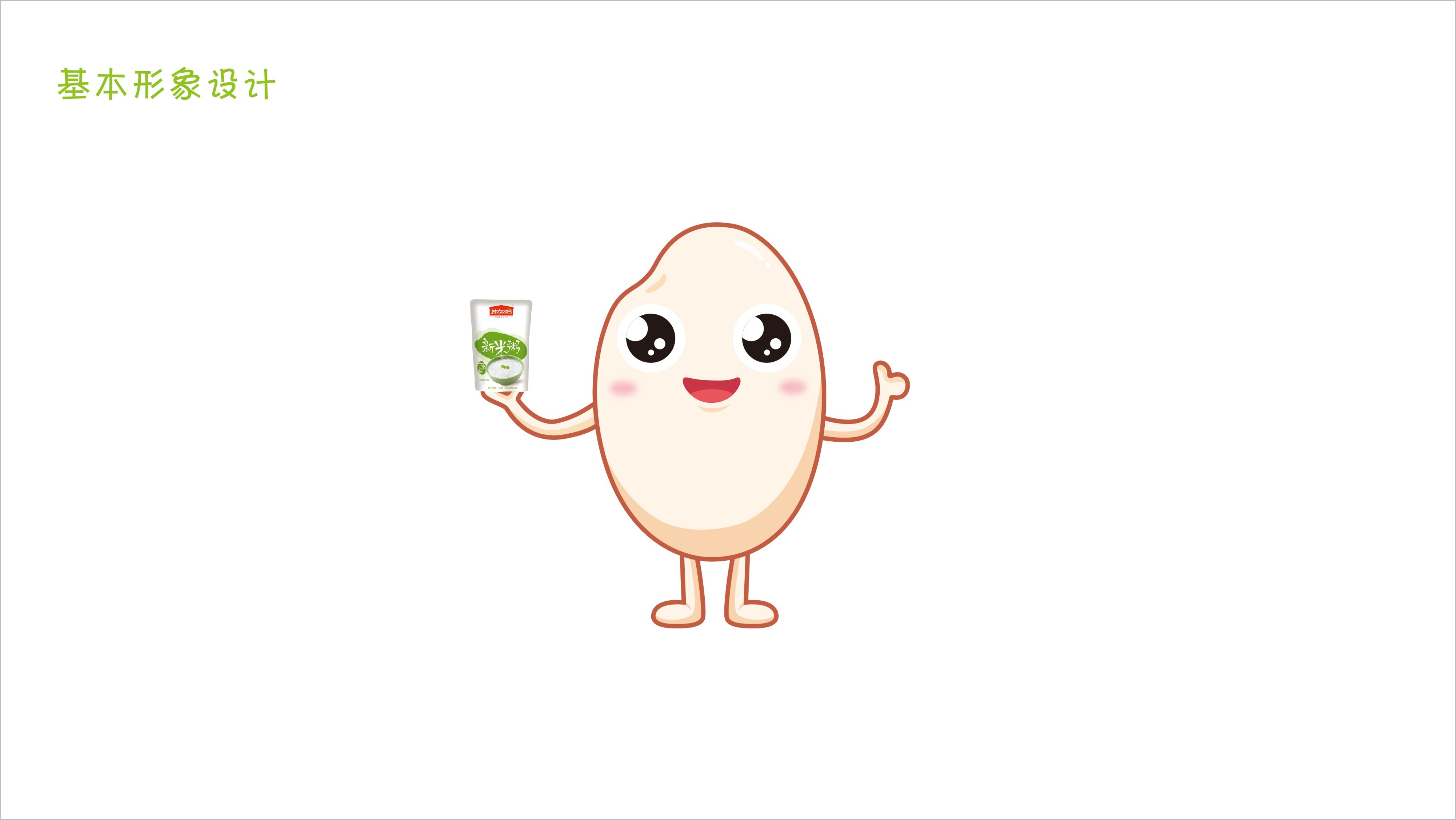 根據(jù)產(chǎn)品的屬性,我們直接從產(chǎn)品本身入手,以米粒為原型,將其擬人化,設(shè)計(jì)成一個(gè)可愛的卡通形象,并且賦予其故事內(nèi)涵和鮮明性格。
